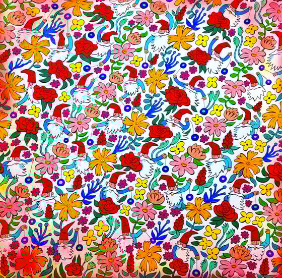 Yo-Yo Gnome and Flower Pattern Original Illustration
